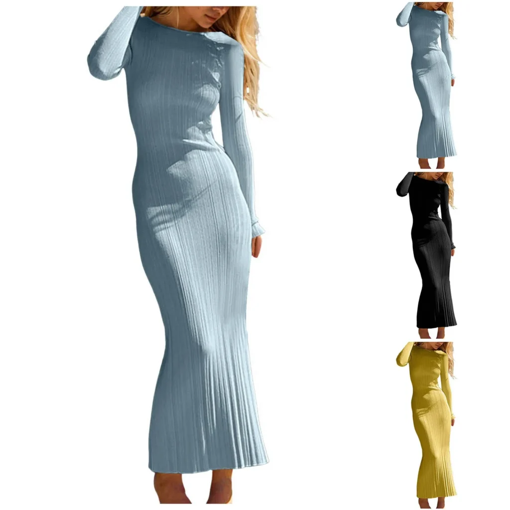 As temperatures drop, structure and warmth take precedence. Bodycon knit maxi dresses designed for cooler seasons rely on thicker knit construction to provide insulation while maintaining shape. Effective fall and winter options include: