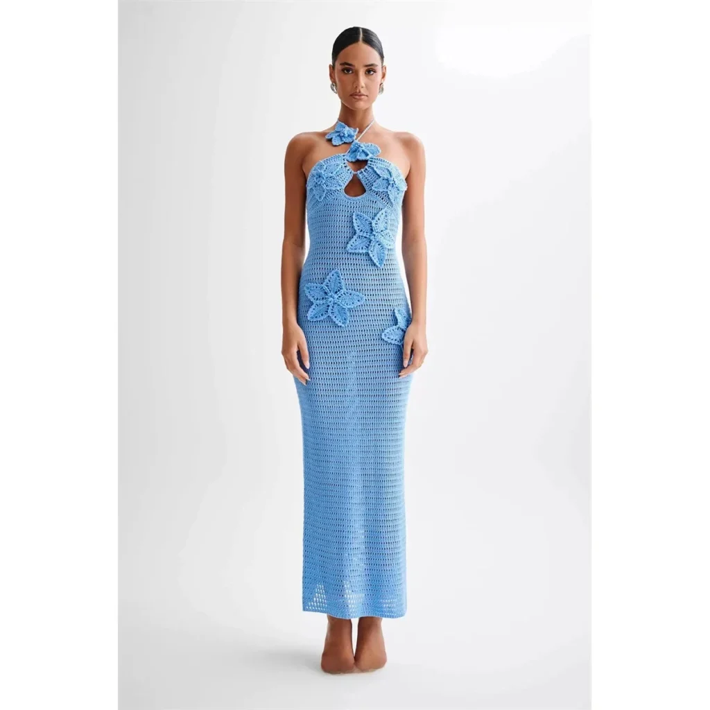 Accessories should enhance, not overpower, the asymmetric design. Statement earrings draw attention to the neckline, while delicate bracelets or rings add subtle elegance. A chic clutch or small handbag maintains balance without competing with the dress. Footwear can range from strappy sandals for daytime outings to elegant heels for evening events, ensuring that the focus remains on the flowing knit maxi dress silhouette.